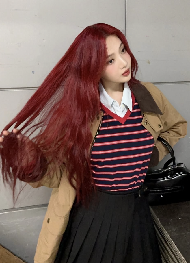 가을이 깊어질수록 레드 컬러가 주는 따뜻한 무드가, 여름 끝자락에는 오렌지 톤의 청량함이 각자의 매력으로 다가옵니다. 조이는 톤 다운된 레드와 선명한 오렌지를 자유롭게 넘나들며, 계절 맞춤 헤어 변신의 정수를 보여주고 있습니다.