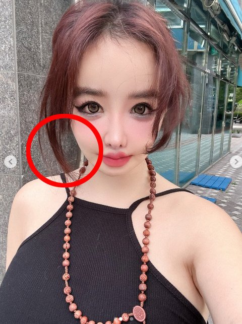 네티즌들은 "필터 또 썼네", "건물 기둥이 휘었다", "보정 안해도 예쁜데" 등의 반응을 보였다.