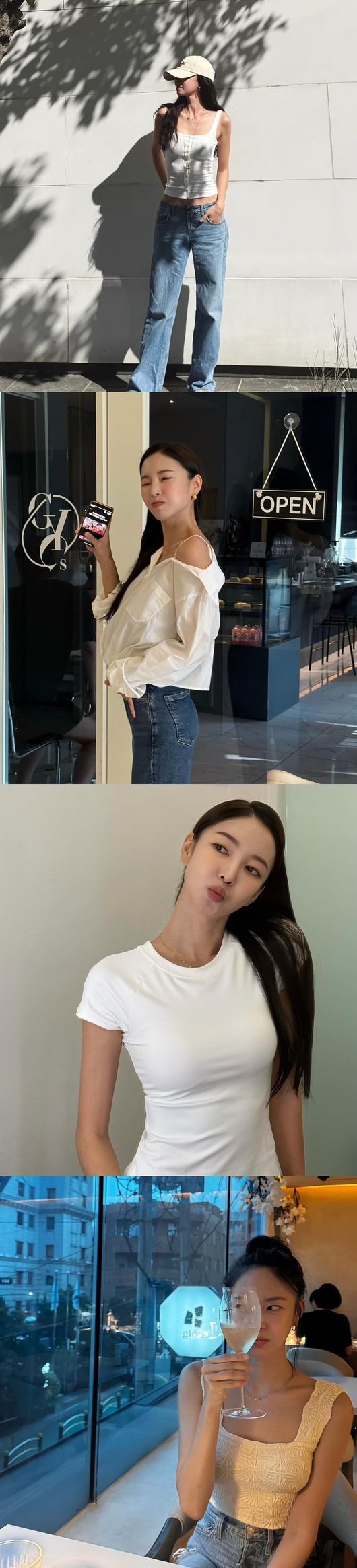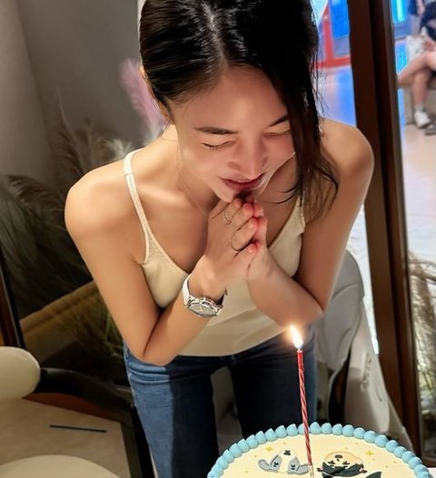 공개된 사진은 흰색 계열의 옷을 입고 있는 다양한 김윤지의 일상 사진. 특히 흰색 끈 상의에 청바지를 입고 케이크를 불고 있는 김윤지는 완벽한 몸매를 자랑하고 있다. 앙상하게 드러난 어깨뼈와 쇄골 라인은 출산 전과 다름없는 모습이다.