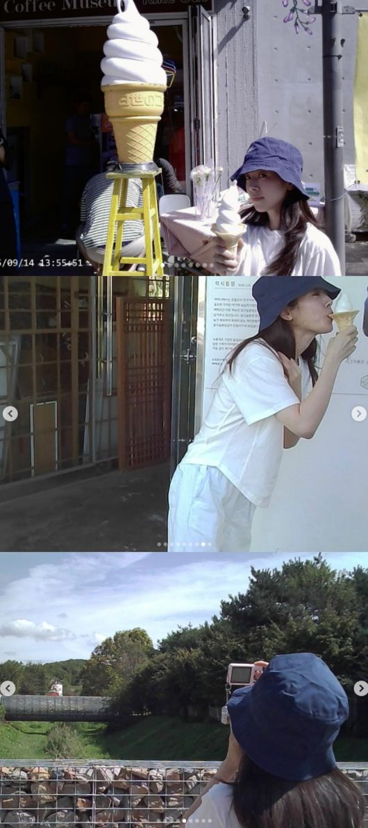 사진 속 한지민은 반팔티에 벙거지 모자를 착용한 채 아이스크림을 들고 포즈를 취하고 있다. 카메라를 향해 미소를 지어보이던 그는 이후 아이스크림이 녹아내리자 허겁지겁 먹는 듯한 모습을 덧붙여 웃음을 자아냈다.