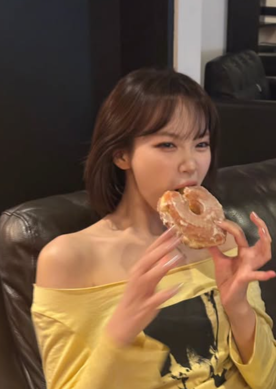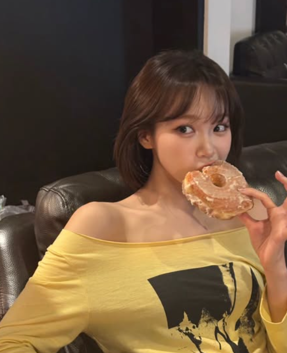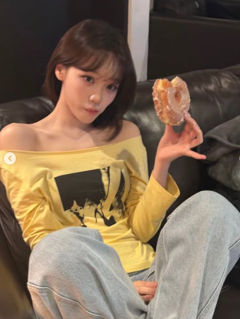 사진 속 김채원은 노란색 오프숄더 티셔츠를 입고 도넛을 먹는 모습이다. 장난기 가득한 표정부터 은근한 섹시미를 풍기는 포즈까지 다채로운 매력으로 시선을 사로잡았다.