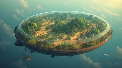 1만명이 살수있는 작은 섬 크기로 만들면 하늘에 떠있는 천공의 요새가 되는거야.