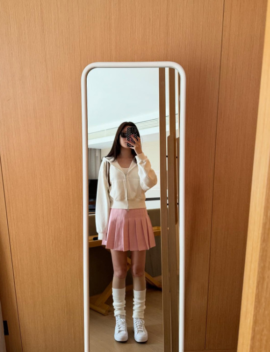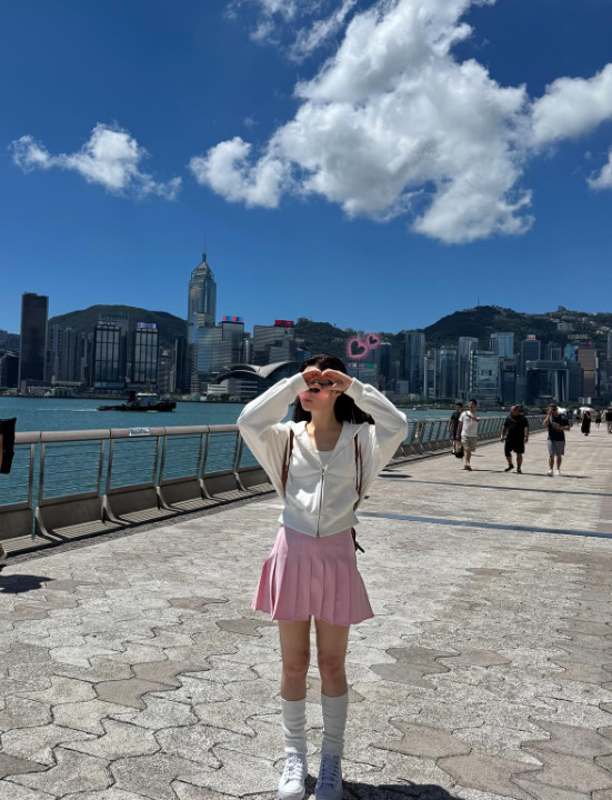 공개된 사진 속 정채연은 지난 2015년 홍콩에서 뮤직비디오를 촬영하며 입었던 의상과 비슷한 옷을 입고 리마인드 촬영을 이어가고 있는 모습이다. 이어진 게시글에서도 분홍색 테니스 스커트를 입은 채 다양한 포즈를 취하고 있다.