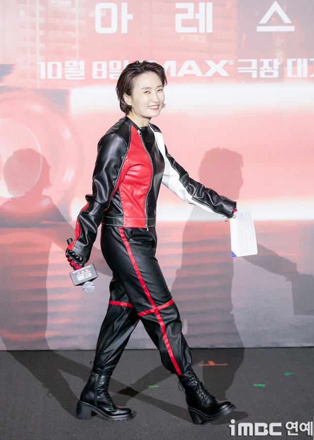 MC 박경림이 15일 오전 서울 용산CGV에서 열린 영화 ‘트론: 아레스’ 풋티지 시사 및 그레타 리 내한 기자간담회에 참석해 포즈를 취하고 있다.