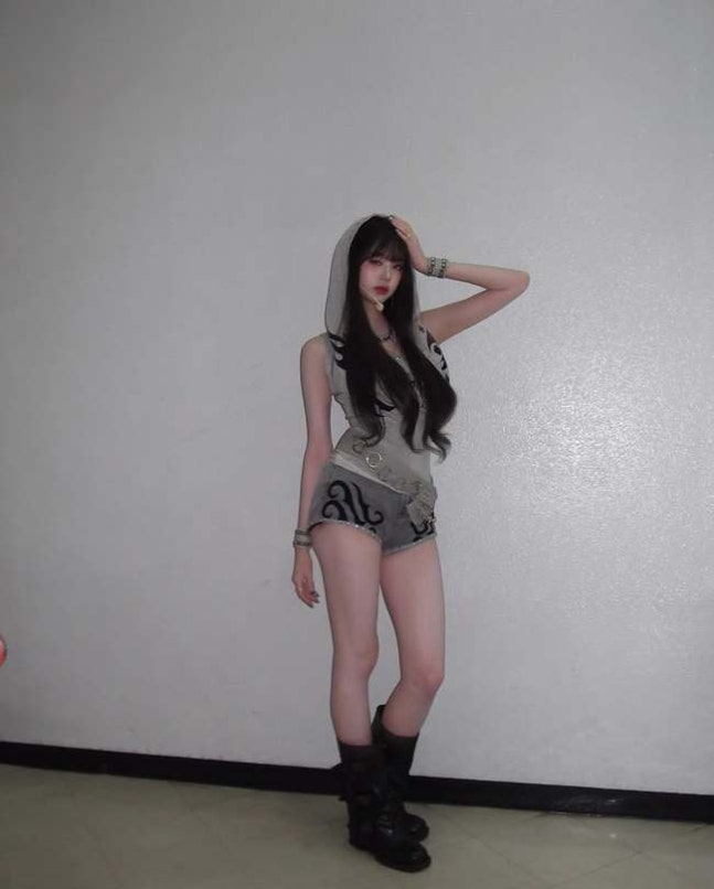 장원영 소셜미디어공개된 사진 속 장원영은 모자가 달린 민소매에 핫팬츠를 입고 포즈를 취했다.