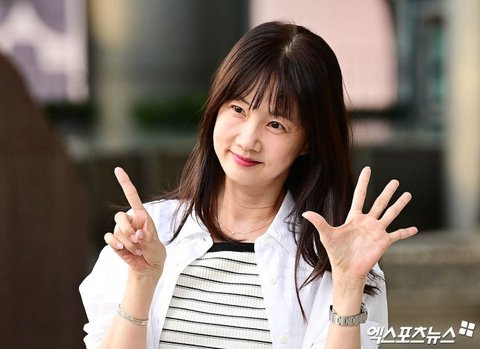 이날 출근길에 방송인 박소현이 포즈를 취하고 있다.