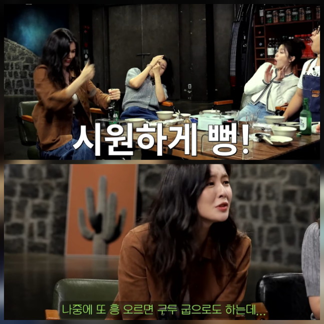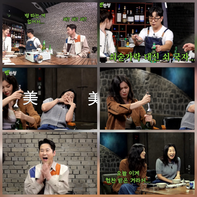이선빈이 술자리에서 국자로 병을 따는 색다른 기술을 선보여 웃음을 자아냈다. 사진=튜브 채널 ‘짠한형’