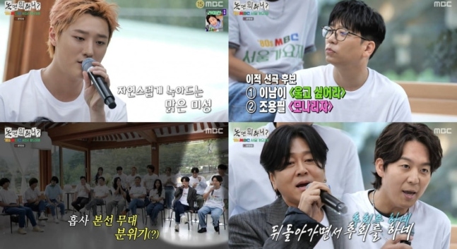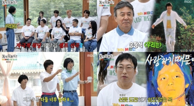 사진=MBC선곡을 아직 하지 못한 우즈, 이적, 하동균은 현장에서 함께 고민을 나눴다. 우즈는 '귀로(박선주)'와 '마지막 콘서트(이승철)'를 고민 중이었고, 현장에서 '귀로'를 불러보면서 의견을 구했다. 이적은 "저렇게 잘생겨서 노래도 잘한다"라며 재능 몰빵을 부러워했다. 이적은 '울고 싶어라(이남이)'와 유재석의 추천곡 '모나리자(조용필)'를 고민했고, 원곡과는 또 다른 담백한 느낌의 '울고 싶어라'를 부르며 박수를 받았다.