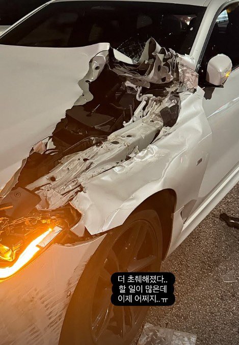 공개된 사진에는 차량 앞부분이 크게 파손된 모습이 담겨 충격을 안겼다.