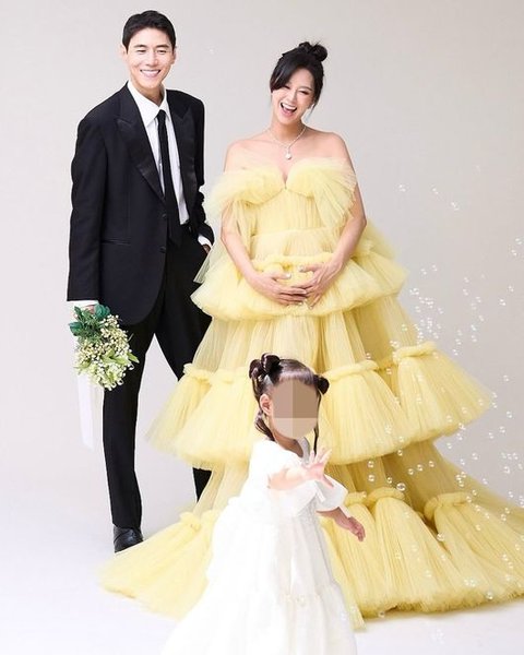 14일 지소연은 자신의 소셜 계정에 남편 송재희, 첫째 딸 하엘이와 함께 찍은 만삭 사진을 공유했다.