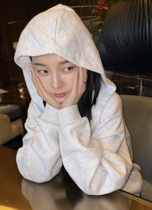 카리나는 화장기 없는 얼굴에도 독보적인 AI 여신 비주얼을 자랑했다. 특히 날렵한 턱선과 또렷한 눈매가 인상적이다.