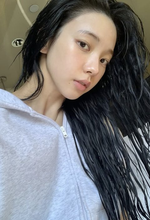 카리나 소셜 계정 캡처사진 속 카리나는 샤워를 마친 듯 촉촉하게 젖은 머리와 민낯으로 셀카를 남겼다.