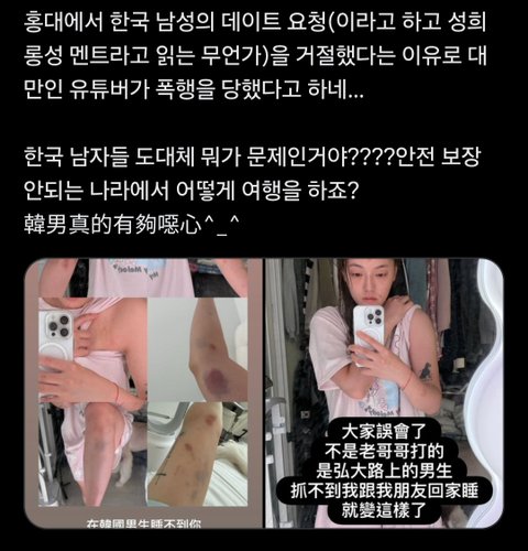 엥 뭐 증거도 없이 한장띡이야 대만 어쩌고 하는거보면 뭔가 중국인이 아니꼬운 대만 이용해서 남녀 갈라치려고 주작한 느낌ㅠ
