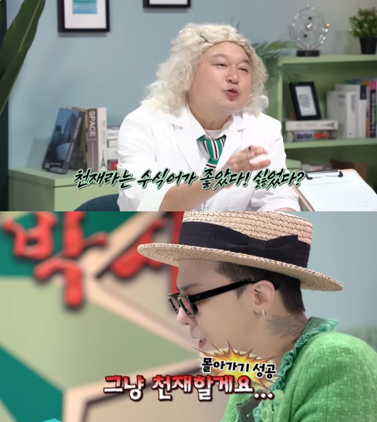 이어 지드래곤과 만난 그는 "천재라는 수식어가 좋았다, 싫었다?"라고 물었다. 그러자 지드래곤은 체념한 듯 "그냥 천재할게요"라고 답했다.