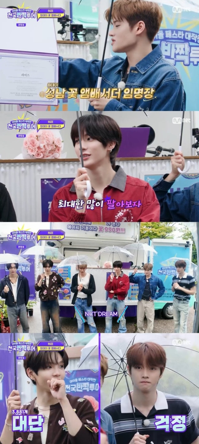 Mnet ‘아이돌 페스타 대작전 : 전국반짝투어’ 캡처화훼농가의 대표 품목인 장미꽃 판매를 앞두고 "최대한 많이 팔아보자"고 파이팅을 외친 멤버들은 "지금까지 제일 많이 판매한 팀이 누구냐"고 물었다.
