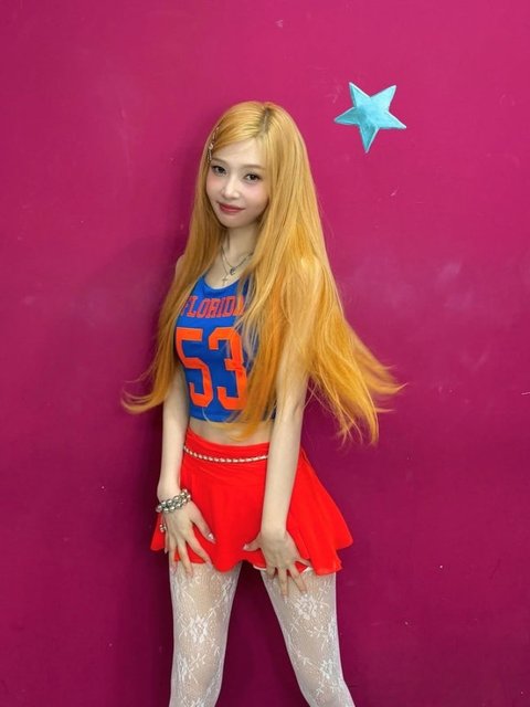공개된 사진 속 조이는 외국 치어리더복을 연상케 하는 쨍한 색감의 나시와 테니스스커트를 매치해 키치한 무드를 연출했다.