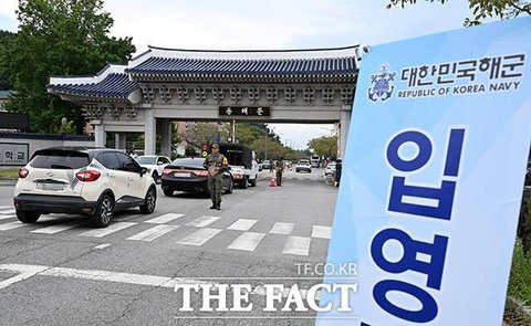 (사진2 설명) 해군사관학교 측이 차량을 통제하고 있다. /남용희 기자