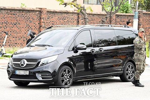 (사진3 설명) 이재용 삼성전자 회장의 장남 이지호 씨가 탑승한 차량이 15일 오후 경남 창원시 진해군 해군사관학교로 들어서고 있다. /남용희 기자