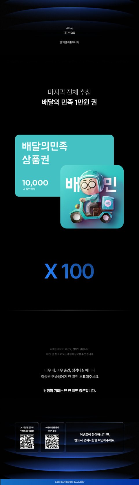 투표 참여 및 응모는 이상원 갤러리 플친으로