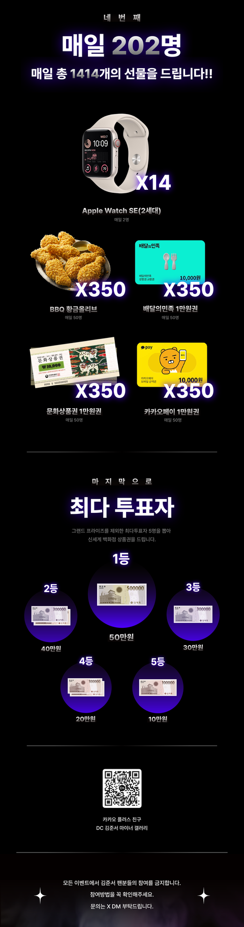 지금 상품수랑 플친수랑 같아!!!! 갤벤 규모는 4위인데 플친수 9위임!! 당첨 확률 젤 높으니까 다들 김준서 뽑고 상품 꼭 받아가