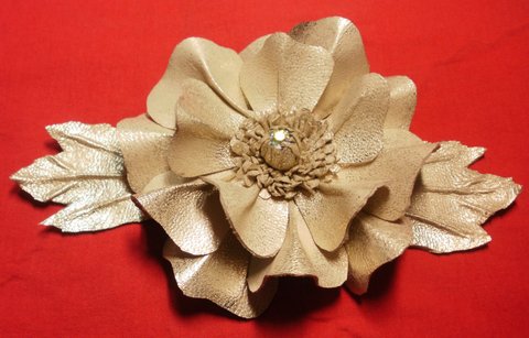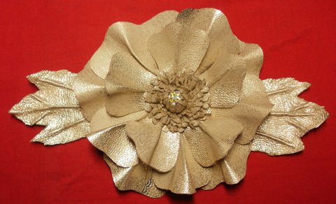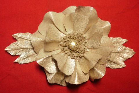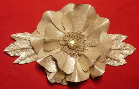 아이보리 컬러와 골드 컬러 호일 처리된 천연 양가죽으로 제작한 레더 플라워(가죽으로 만든 꽃)입니다.(마디샤)