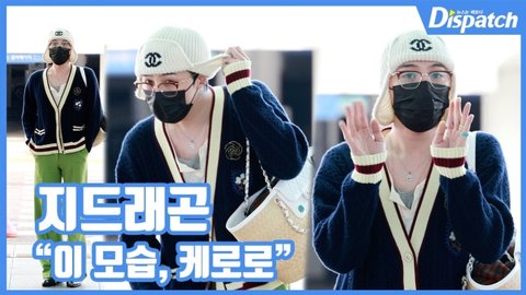 이날 지드래곤은 네이비 카디건과 초록색 바지에 귀마개 비니로 포인트를 준 공항패션으로 럭셔리하면서도 귀여운 모습을 발산했다.