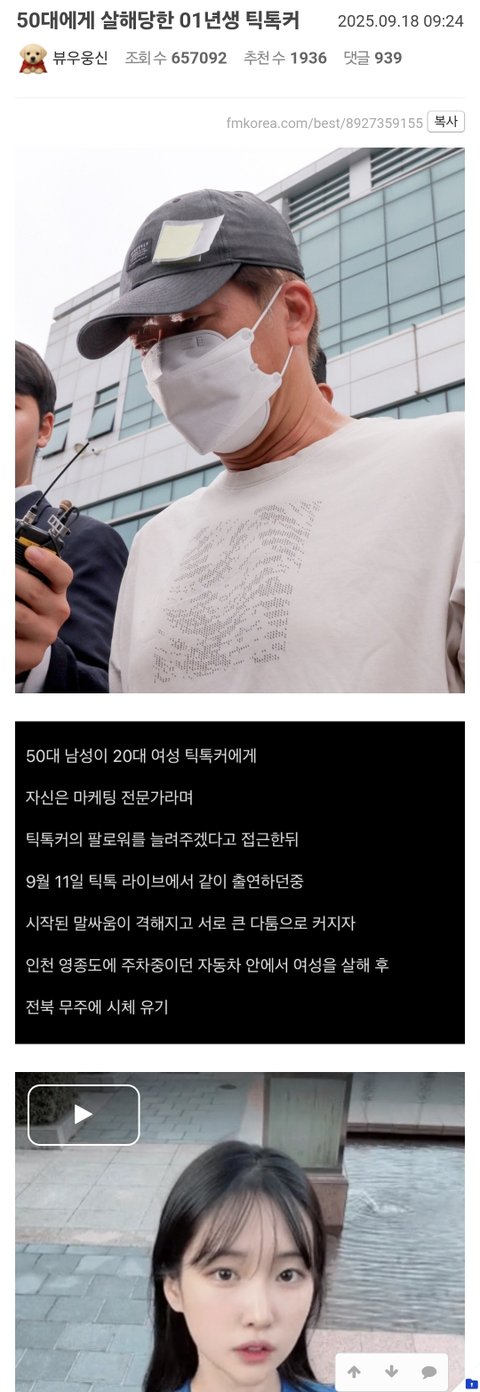 50대남한테 살해당한 01년생 틱톡커 봄?