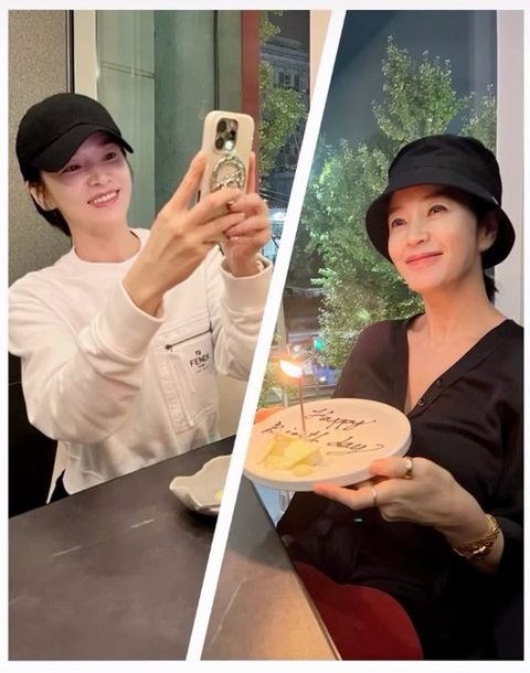 김혜수는 최근 자신의 SNS 스토리를 통해 송혜교와의 만남 사진을 공유했다. 공개된 사진 속 두 사람은 말간 얼굴로 동안 미모를 뽐내며 한 식당에서 즐거운 시간을 보내는 모습. 김혜수는 ‘Happy Birthday’가 적힌 케이크 접시를 들고 환하게 미소 짓고 있으며, 송혜교는 휴대폰으로 인증샷을 남기며 여전한 동안 미모를 뽐냈다.