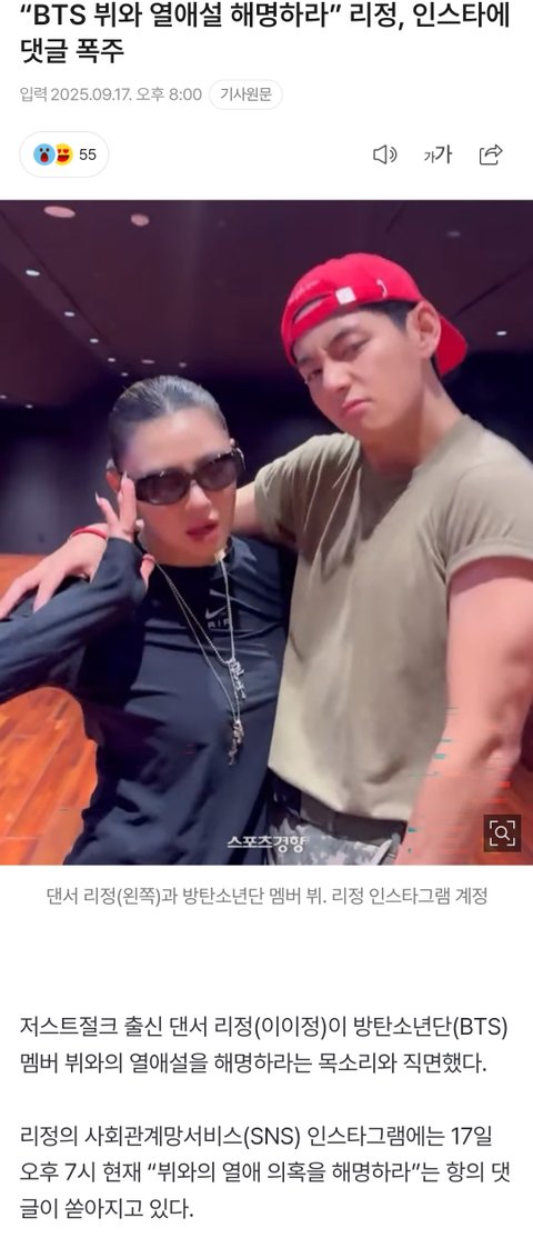 열애설 해명하라고 리정 괴롭히는 방탄 뷔팬들