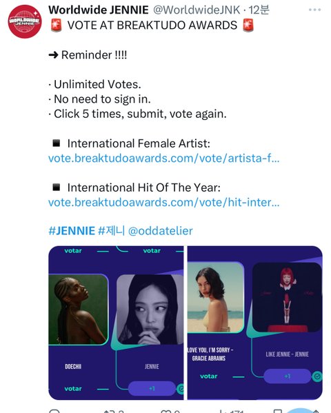 Vma에서 케팝만 노미된 거 이해 안 됐는데 이렇게 노미돼서 너무 뿌듯…투표 열심히 해봅시다