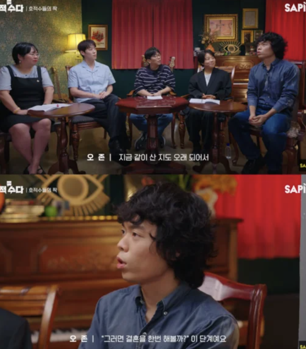 오존은 현재 교제 기간이 “8년 반 넘었다”며 장기 연애 중임을 강조했다. 이를 들은 이적은 “그 정도면 사실상 결혼한 부부만큼 서로 잘 알겠다”고 말했고, 오존은 “지금은 동거한 지도 오래돼서 주변에서 사실혼이라고 부른다. 결혼은 아직 구체적으로 정해진 건 없지만 ‘한번 해볼까?’ 하는 단계”라고 전했다.