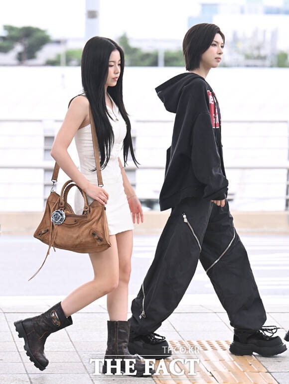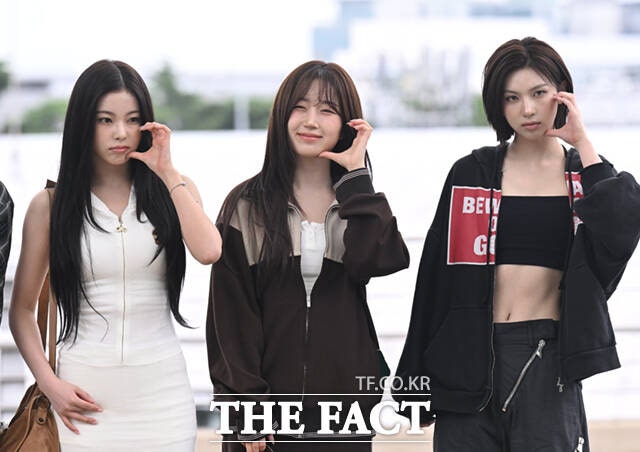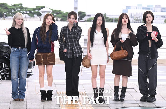 그룹 엔믹스(NMIXX) 베이, 지우, 설윤, 규진, 해원, 릴리(왼쪽부터)가 오는 20일 마카오 아웃도어 퍼포먼스 베뉴(Macao Outdoor Performance Venue, 澳門戶外表演區)에서 개최되는 ‘2025 더팩트 뮤직 어워즈(TMA)’ 참석을 위해 19일 인천국제공항을 통해 출국하고 있다.