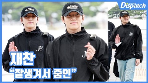이날 재찬은 'JC' 로고가 박힌 바람막이를 착용했다. 훈훈한 자태를 뽐내며 출국장으로 향했다.