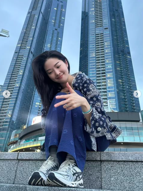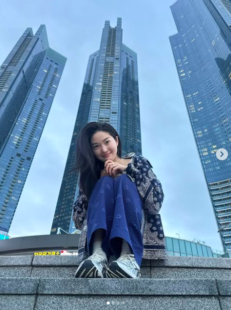공개된 사진 속 류이서는 고층 빌딩을 배경으로 계단에 앉아 포즈를 취하고 있다. 카메라를 향해 미소 짓는 그는 편안한 룩을 선보인채 소소한 일상을 보내고 있는 모습이다.