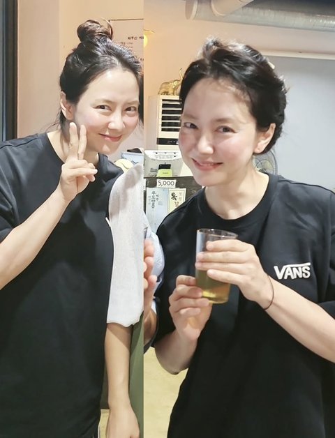 또 다른 사진에서는 손에 맥주잔을 들고 특유의 친근하고 소탈한 매력을 드러냈다. 송지효는 화려한 스타일링 없이도 빛나는 존재감을 발휘하며 시선을 끌었다.
