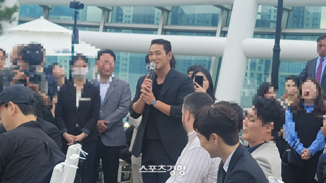 김병만 결혼식에서 축사를 하고 있는 가수 백호. 사진 독자제공