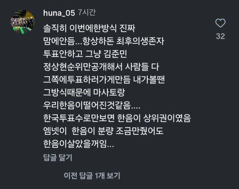 글로벌 투표수 압도적 꼴등인데 무슨 근거로 파이널에 올라갈거라고 생각했을까 ㅋㅋㅋ