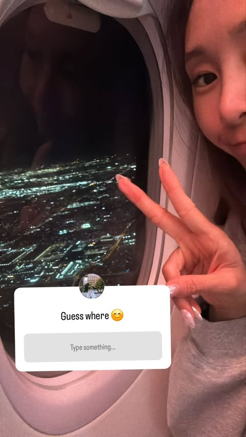 20일 지나는 자신의 소셜미디어(SNS)에 “Guess where(어디게)”라는 짧은 글과 함께 비행기 안에서 촬영한 사진을 게재했다. 공개된 사진 속 지나는 야경이 내려다보이는 비행기 창가에 앉아 브이(V) 포즈를 취하며 은은한 미소를 지어 보였다.