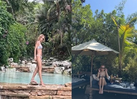 사진 속 효연은 에메랄드빛 물이 흐르는 계곡에서 비키니를 입고 포즈를 취하고 있다. 한 눈에 보기에도 슬림한 그의 비키니 자태가 시선을 사로잡는다.