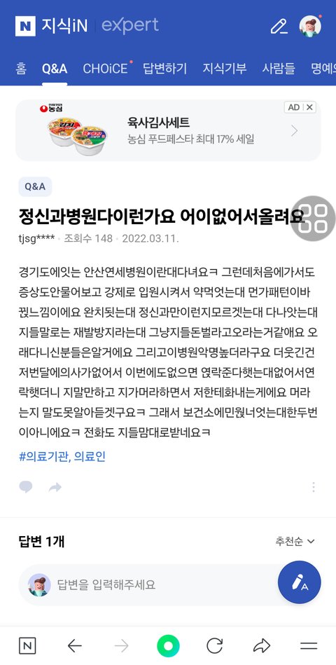 지금도 보령 엘피스 폐쇄 병동에 있습니다.