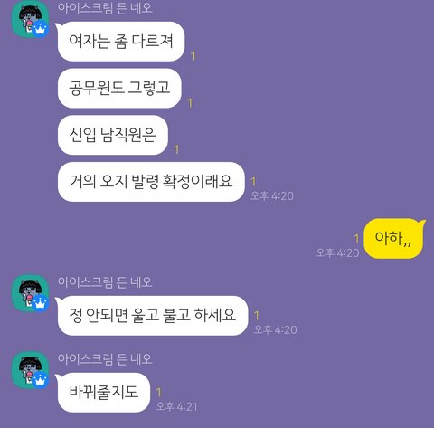 공기업은 여자가 울면 봐준다라면서 저보고 발령이 잘못난다면 울어보라는 식으로 말을 했습니다.