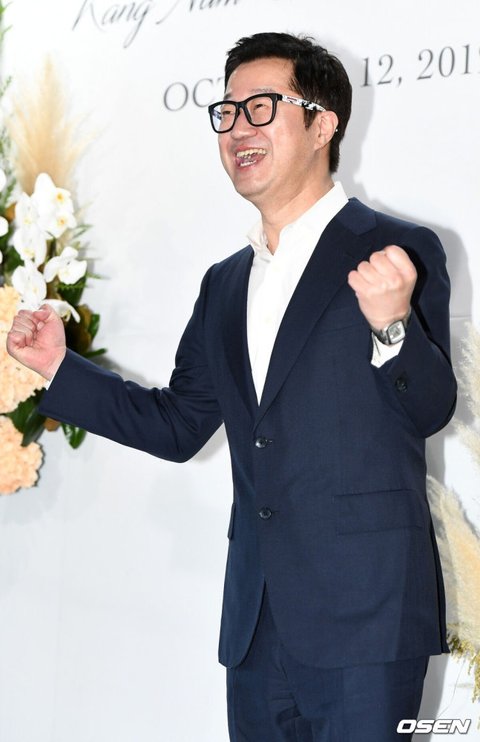 [OSEN=최규한 기자] 가수 강남과 전 스피드스케이팅선수 이상화가 12일 오전 서울의 한 호텔에서 결혼식을 올린다.방송인 지상렬이 하객으로 참석해 포토타임을 하고 있다. /dreamer@osen.co.kr