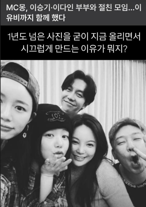 약 2개월 만에 MC몽이 올린 사진은 그의 근황으로 소개되며 화제를 모았지만, 사진을 찍은 시기 등에 대한 설명이 없었기에 MC몽이 소속사 식구 이승기를 비롯해 그의 아내 이유비, 이승기의 처형이자 이다인의 언니 이유비와 인연을 이어가고 있는 것으로 보였다.