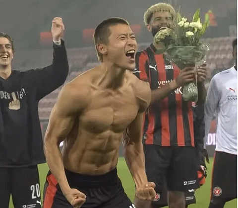 덴마크 미트윌란 vs 비보르 경기에서 후반 추가시간에 쐐기골 넣고 갑자기 상의 탈의ㅋㅋ 팬들 앞에서 포효함 ㅠㅠ 근데 솔직히 그 복근 보고 열광 안 할 수가 없음…