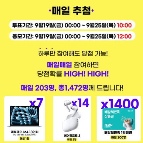 ⏰ 응모기간: 9/19(금) 00:00 ~ 9/25(목) 12:00