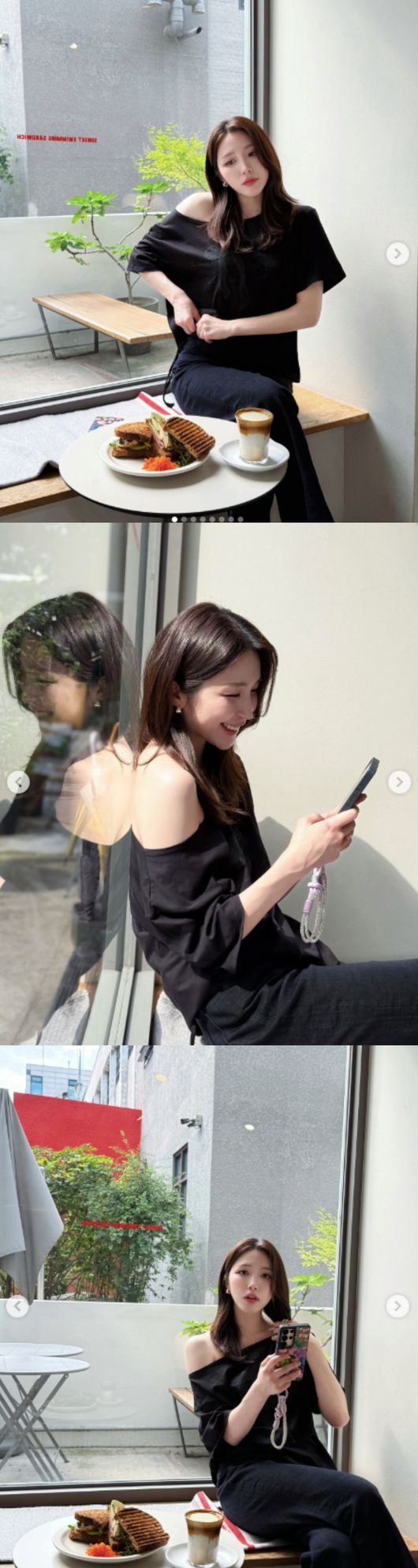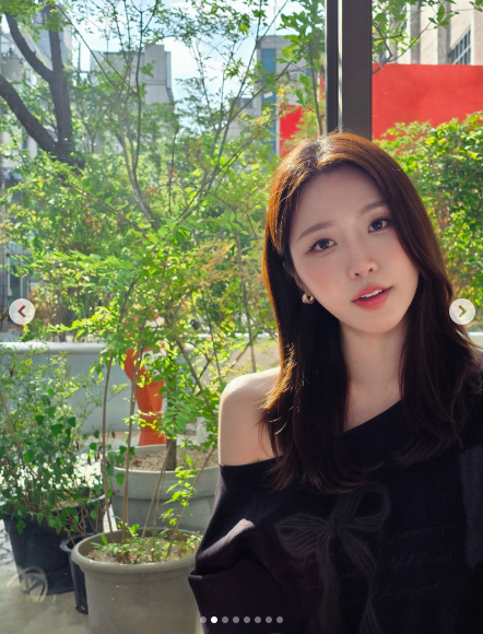 사진 속 성해은은 카페에 앉아 포즈를 취하고 있다. 그는 긴 바지에 한쪽 어깨를 드러내는 상의를 입고서 청순하면서도 우아한 분위기를 자아내고 있다.