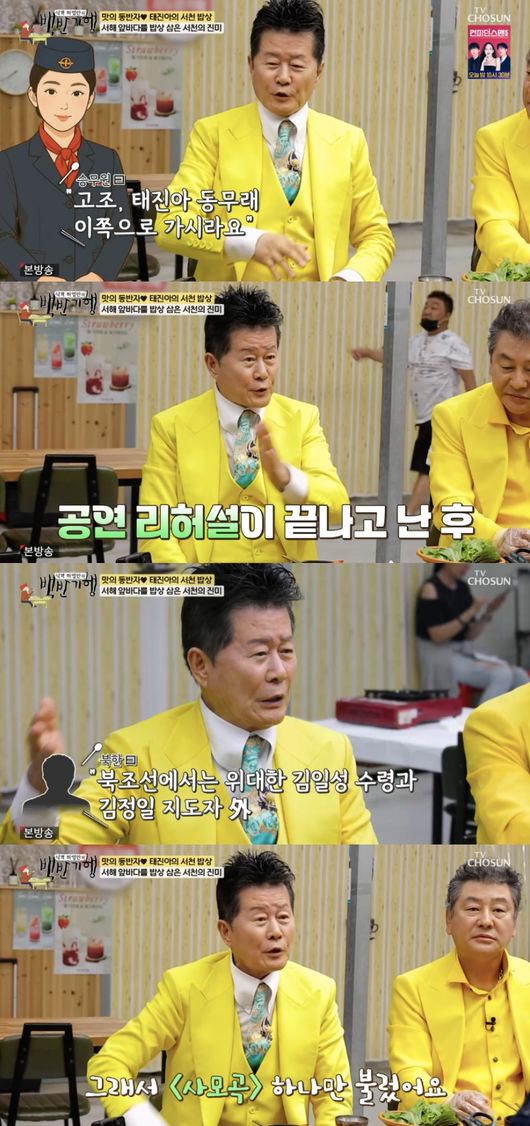 이날 허영만은 “태진아 씨 해외 공연 많이 했죠?”라고 물었다. 태진아는 “미국 수도 없이 많이 갔고, 호주, 캐나다, 일본도 많이 갔다 왔다. 그 다음에 북한”이라고 밝혔다.