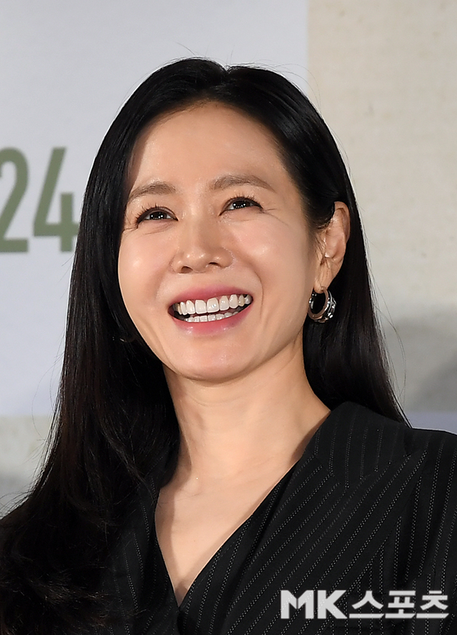 22일 서울 용산 CGV아이파크몰에서 열린 언론시사회에서 손예진은 블랙 스트라이프 재킷과 미니 원피스를 매치한 모던한 룩으로 등장했다. 사진=천정환 기자