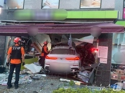 22일 오전 6시 6분쯤 부산 해운대구 재송동 한 교차로에서 SUV가 편의점으로 돌진하는 사고가 발생했다.