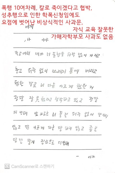 이 사과문을 보시면 뭣 때문에 학폭을 신청한 것으로 보이시나요?